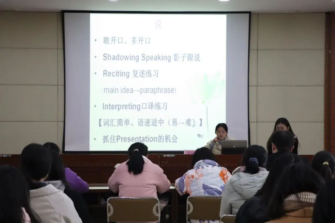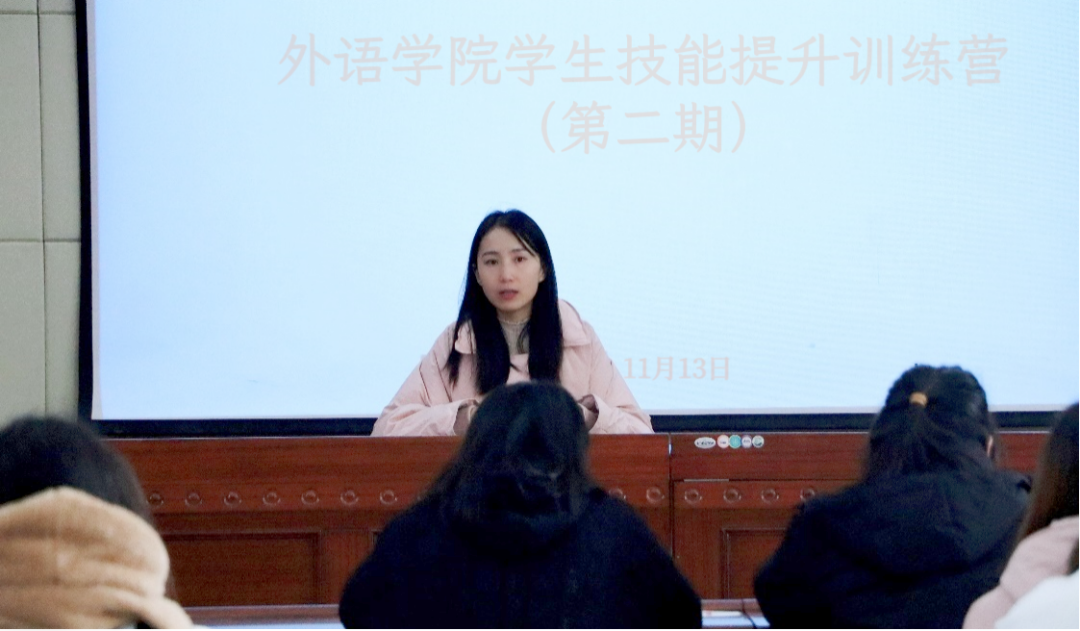 11月15日,训练营小班长2020级翻译专业肖地翠同学讲解“学习规划与方法”。