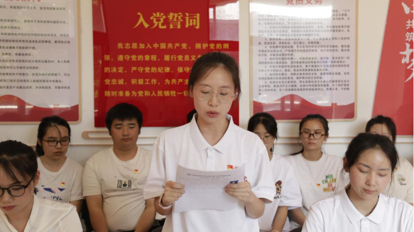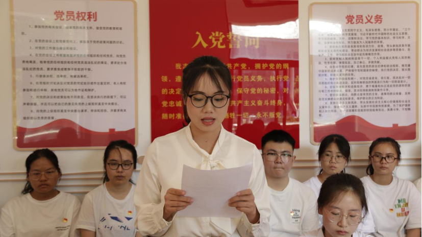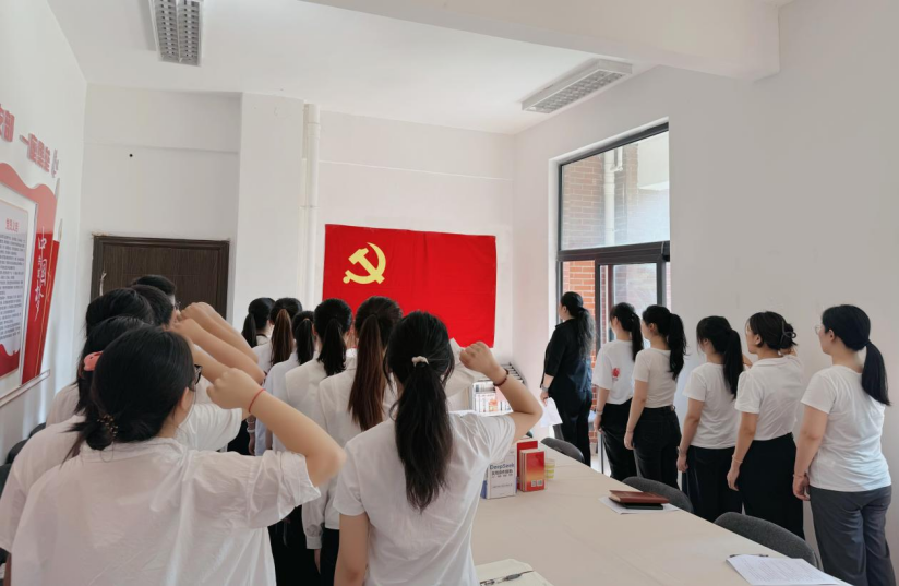 主题党日在庄严的《国际歌》中开始,随后研究生党支部书记张夕宣读了新党员名单,并带领全体新党员面向鲜红的党旗进行了宣誓。全体同志声音坚定而洪亮,誓言字字铿锵、句句千钧,表达了对党的无限忠诚和为共产主义事业奋斗终身的决心。