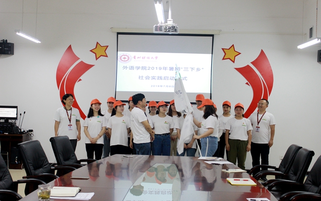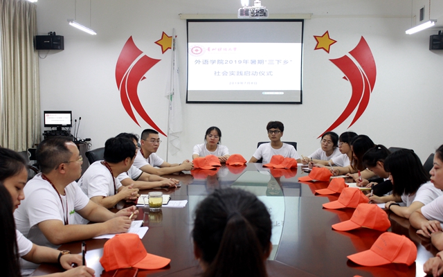 2019年暑期“三下乡”社会实践启动仪式。此次启动仪式由团委副书记康维老师主持。参会人员有党委书记胡张林、院长张虹、党委副书记王钊及“三下乡”实践队伍全体成员。