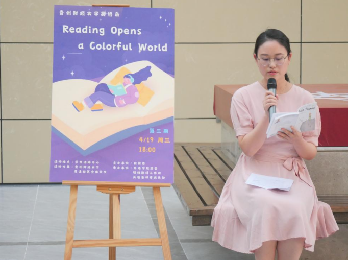 在阅读分享环节,同学们纷纷拿出心爱的书籍,用英语分享了《小妇人》、《第七天》、《撒哈拉的故事》等书籍的阅读心得。英语角指导老师田婷也为大家带来了经典书目《小王子》的解读,并用法语朗读了书中第一个章节,让同学们体验了法语之美。一书一故事,一人一感受,同学们通过阅读领略五彩斑斓的世界。