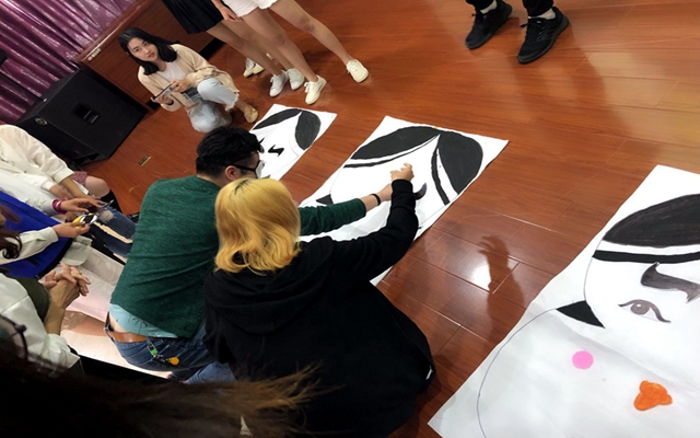活动第五环节——游戏环节。游戏由四人组成,通过“上、下、左、右”的口令指挥被眼罩蒙起眼睛的队友在道具上组成“脸”的表情,首先完成的队伍获胜。在游戏的最后,同学们在纸上写下了自己的夏日心愿。